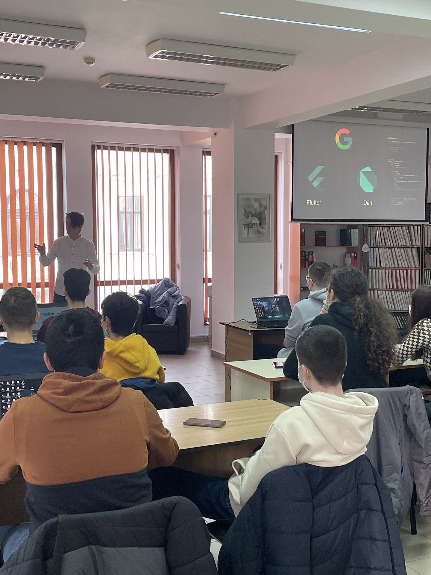 FlutterLab a fost primul curs de dezvoltare de aplicații de mobil făcut vreodată în Brăila. S-a bazat pe învățarea framework-ului Flutter cu care poți crea aplicații atât pentru Android cât și pentru iOS cu un singur cod sursă. Scopul principal a fost stârnirea interesului pentru programare, mai mult decât învățarea propriu-zisă a unui limbaj sau utilizarea unor instrumente. Ajutat de încă 3 colegi de liceu, am susținut acest curs de-a lungul a 3 luni, debutând cu un număr de 60 de cursanți. Spațiul pentru desfășurarea orelor a fost pus la dispoziție de către Biblioteca Județeană "Panait Istrati".